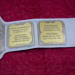 - White Strap Design – Unlike traditional championship belts, this belt features a stunning white strap, making it a unique collector’s item.
